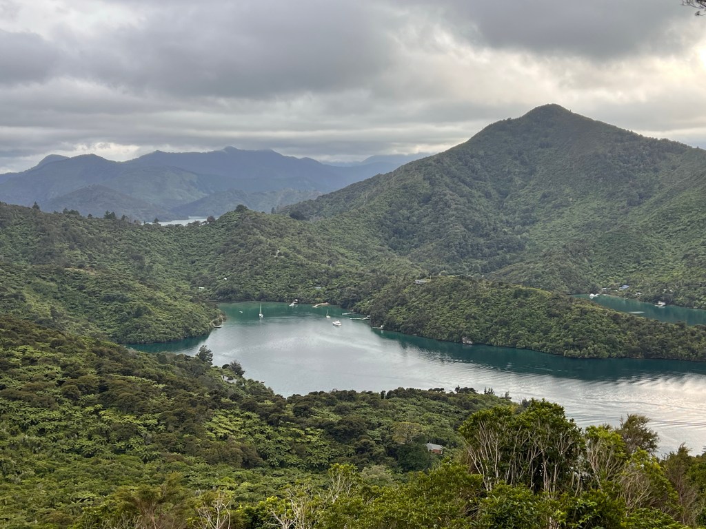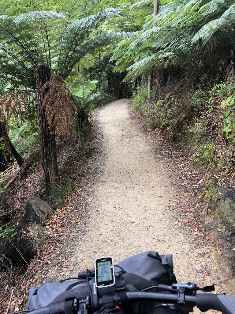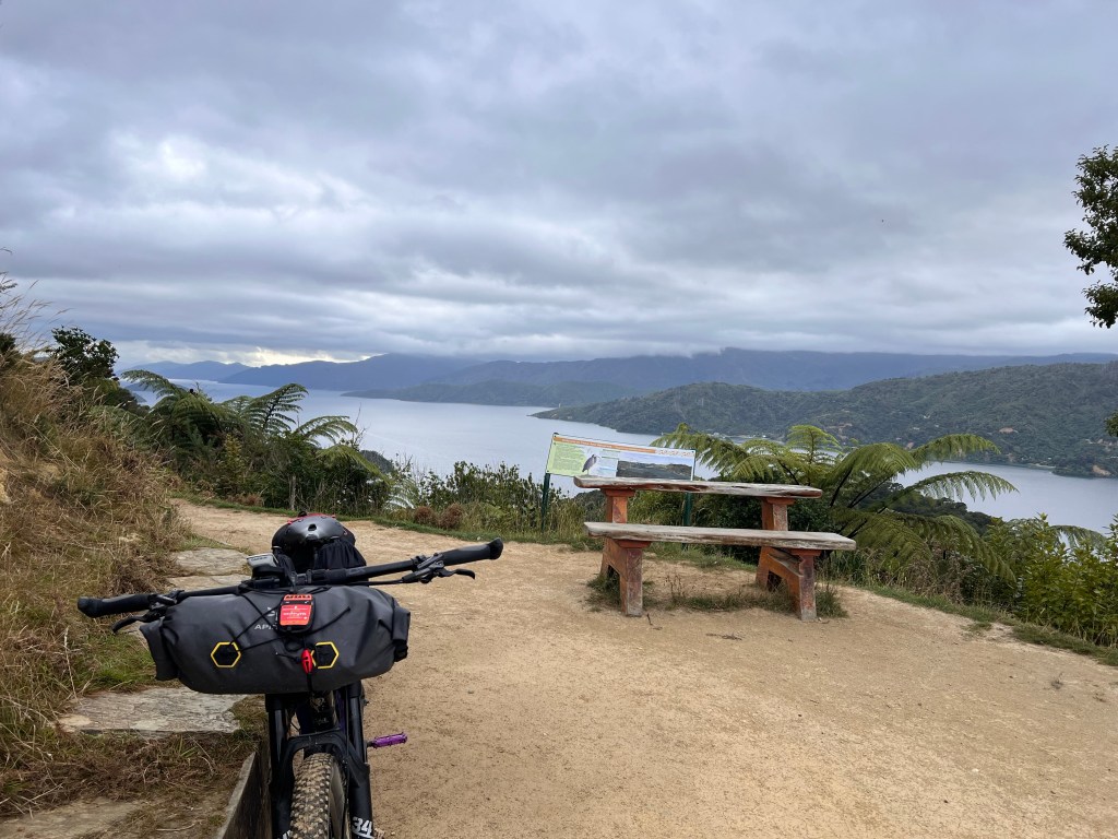 The trampers headed off at 7.00 and I loaded up the bike and was off by 7.30-ish. The last bit of the Queen Charlotte track to Anakiwa was magic. It’s been seriously groomed and is not technical so was was zipping along. The early bit had some mud and a tree branch down and a few rocky creek crossings but all good.