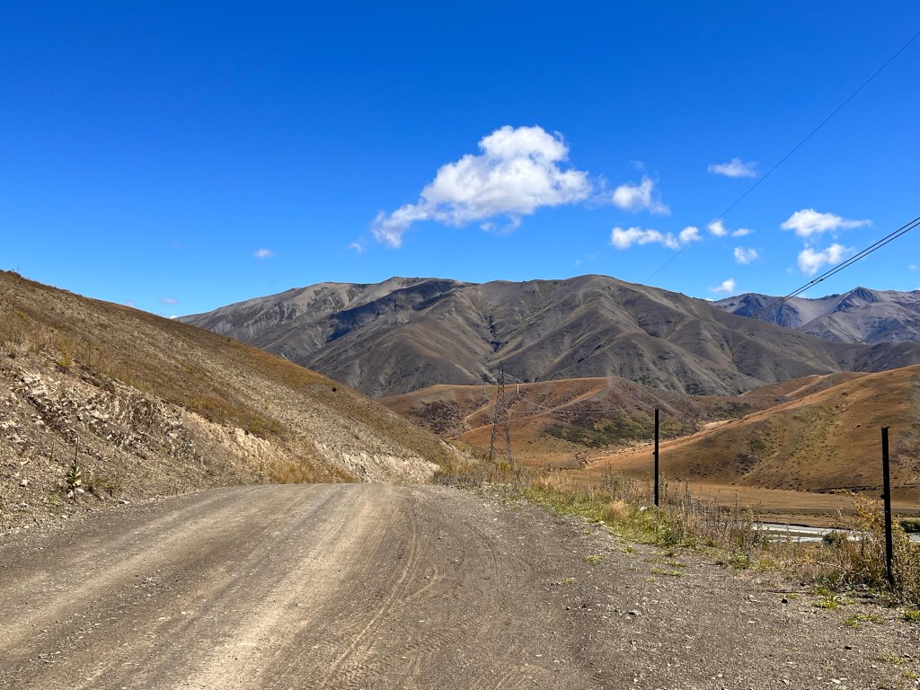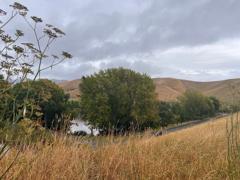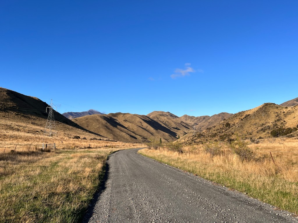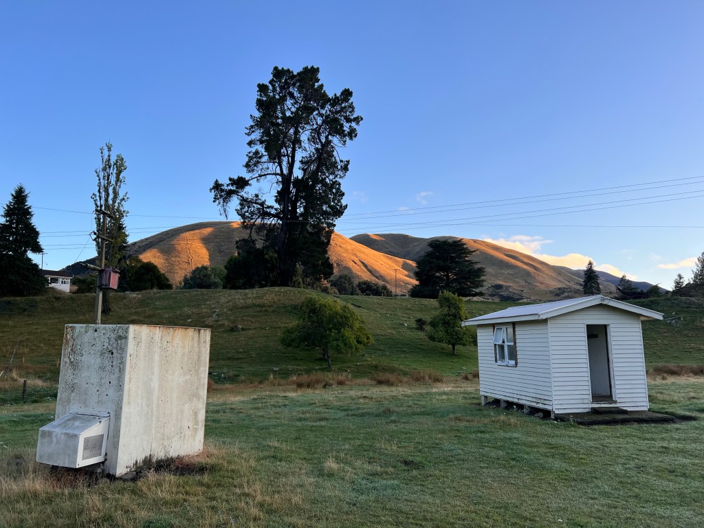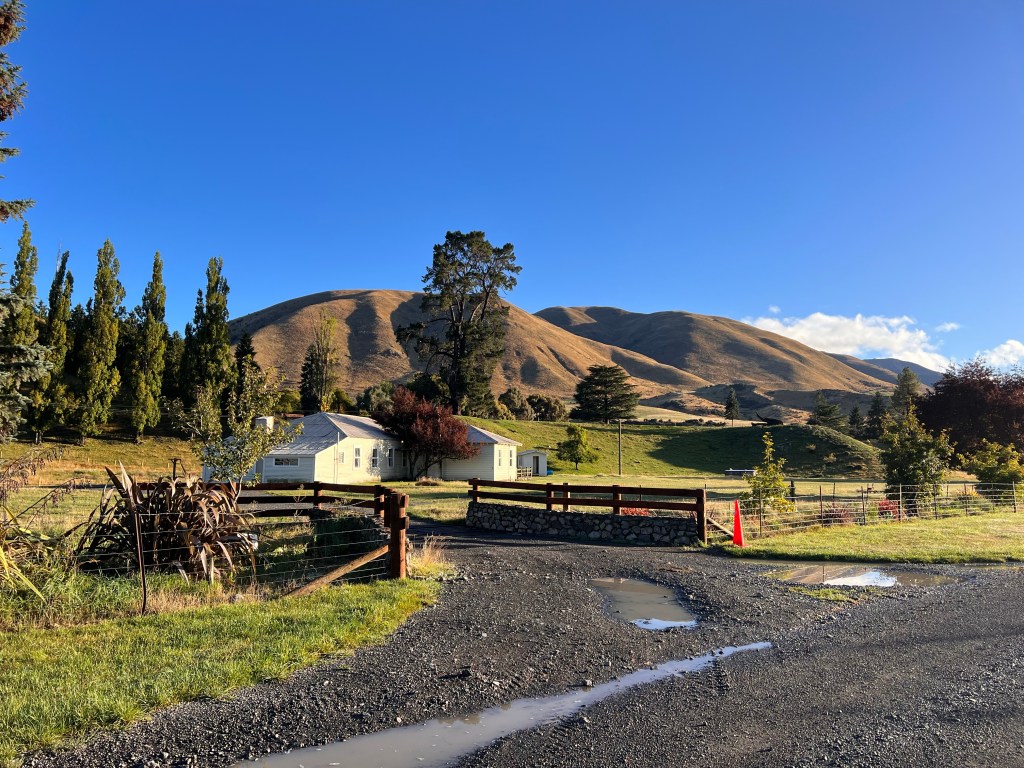 After the descent off Taylor’s Pass I had to stop and wash the chain with my water bottle as there was so much mud and grit in the chain I thought it might get stuck. After a good hose down with the water bottle I dried it and oiled it – then the road thankfully turned into tarseal. Lots of water on the road but not muddy. The valley was nice – slow climb up then I got to the significant climb which turned into gravel part way up. Lots of rain on the climb but quite refreshing. The last 25km to Upcot Station was very hilly, nearly all the climbs were tarsealed then would revert to gravel. A big slip with lots of mud just before the bridge. I could see shearer’s quarters on the other side of the bridge – however green sheds and I knew I was looking for cream sheds so kept going. 2km later I arrived!