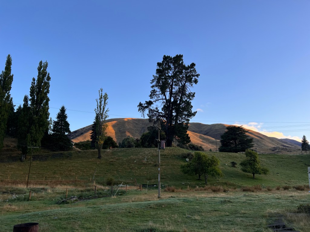 At 4.30pm it poured down and when walked up to the homestead for dinner it was full wet weather gear to get there! Great dinner – beef schnitzel, roast veges, rhubarb crumble for dessert. Still raining lightly when we went to bed so had the dual sound of rain and cows – the cows were in for annual TB testing.