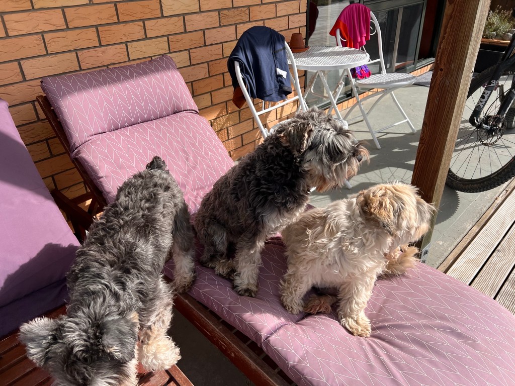 A bit later on (after a bit of blog updating and dot watching) I met 3 dogs – who were having an awesome time running laps around the house and were very friendly – jumped up beside me on the sun lounger and hung out.