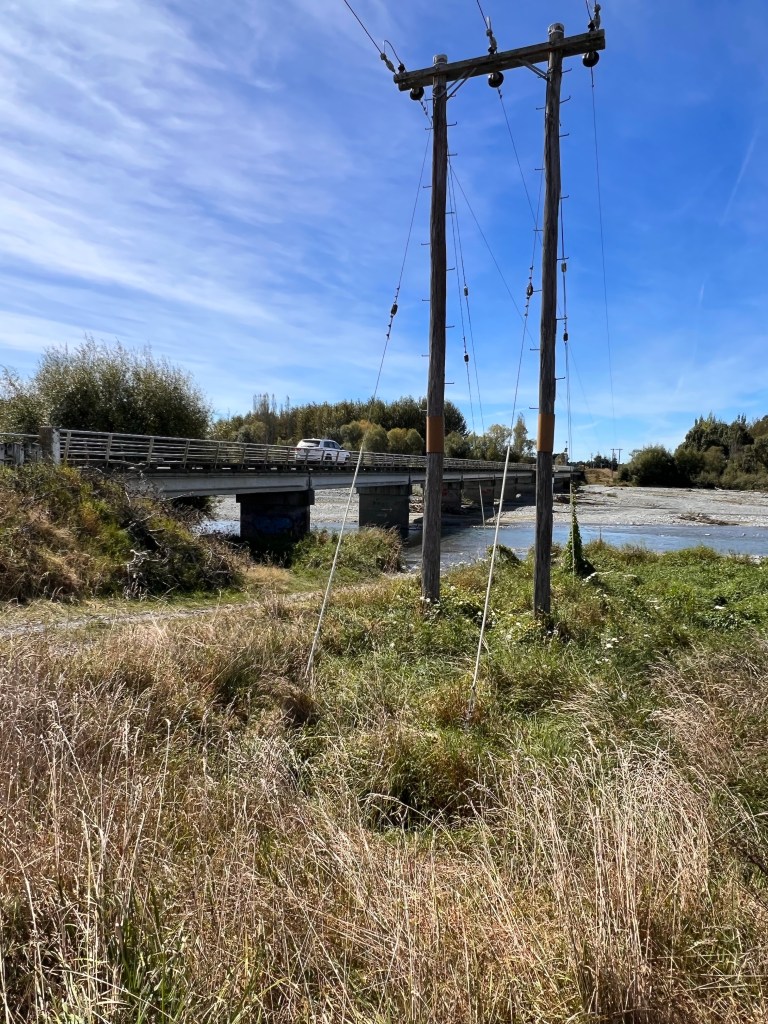 Across the Rangitata bridge, a dogleg to miss some main road, then across Orari Bridge. The route had us riding the stopbank tracks across to Bennetts Road and Templar Street, all a trip down memory lane as I used to go to pony club on Bennetts Road and had a school friend who lived on Templar street. Biking though Kennedy Park I took a short detour and checked out my old high school. The buildings looked similar but a Kennedy’s Park has more trees and a skate park. The foot bridge has been replaced – think the one I remember got wiped out in a flood years ago.
